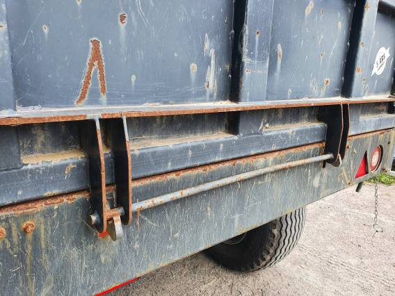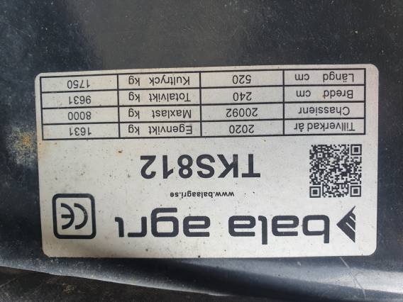 ( SÅLD ) Beg dumpersvagn Bala Agri TKS 812. Årsmodell -20. Maxlast 8 ton. Hängd & svängbar lucka bak. Broms. Ledbelysning. Flakmått inv 365x210x57,5. Lastkapacitet 4,5 m3. Hjul 400/60x15,5. Egenvikt 1696. |