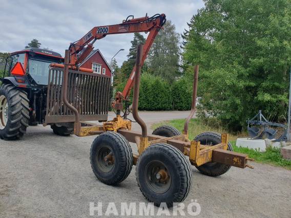 Beg skogsvagn Moheda vagnen med FMV 2000 kran. Boggi. Flyttbar axel & banke. Frontgrind. 4 stakar med förhöjning. 6 st stakhål. Manuella stödben. Grip KG 180 (ca 3 år gammal) Dubbla svängcylindrar. Vinsch Star kraftuttagsdriven. Flerspakspaket. Bra däck. Inga lagningar eller läckage.