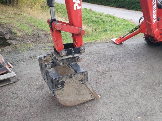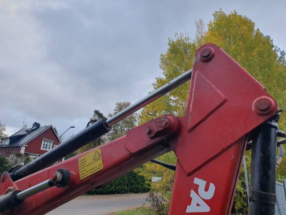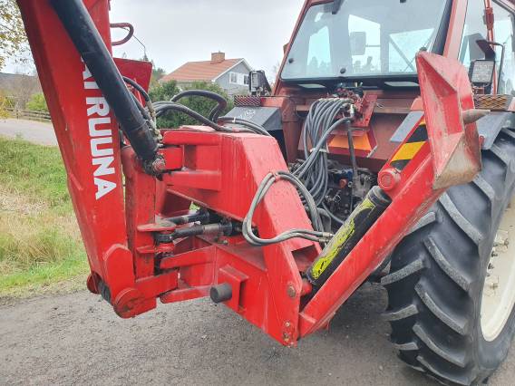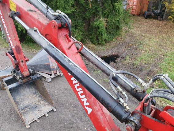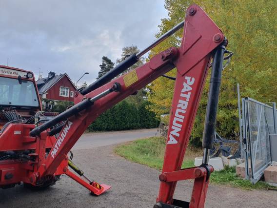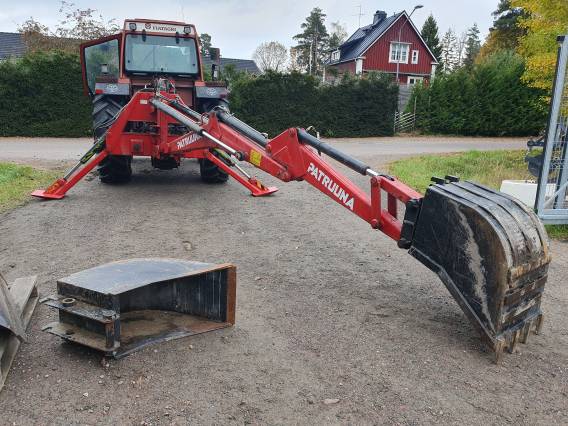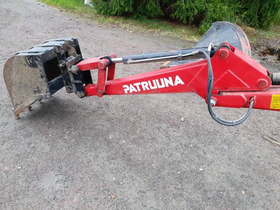 | Beg grävaggregat Patruuna 10. Trepunktsfäste. Eget hydraulsystem med kraftuttagsdriven pump & tank. Tvåspaks system. Hydrauliska stödben. Smalskopa, grävskopa med tänder samt dikesskopa medföljer! Aggregat & skopor är mycket sparsamt använt. |