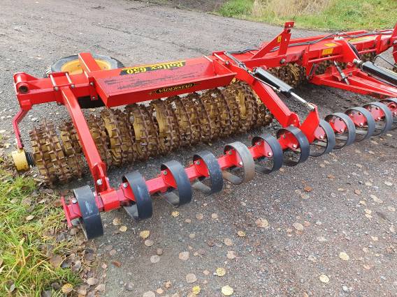 ( SÅLD ) Beg crosskillervält Väderstad Rollex 650. Årsmodell -97. Crosskiller ringar. Hydraulisk crossboard. Arbetsbredd 6.5 meter. Vikt 2700 kg. Fint skick!