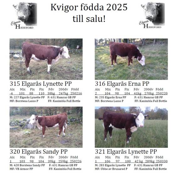 Kvigor födda 25 säljes. Stambokförs vid försäljning.