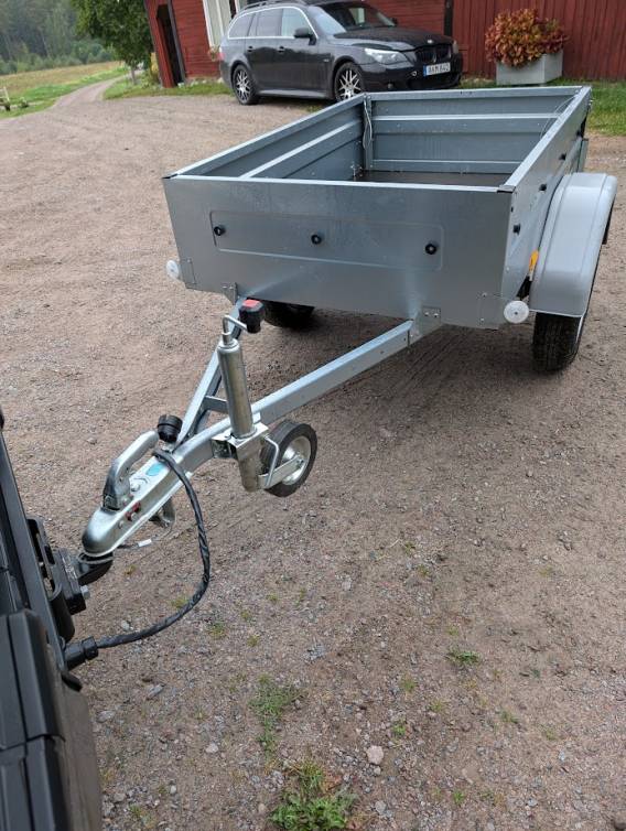 Som ny. Passar Bil o ATV Totalvikt: 500 kg Lastvikt: 405 kg Tjänstevikt: 95 kg Flakmått: 144x94x35cm Totallängd: 2557 mm Broms: Nej Hjul: 145/80Rx13