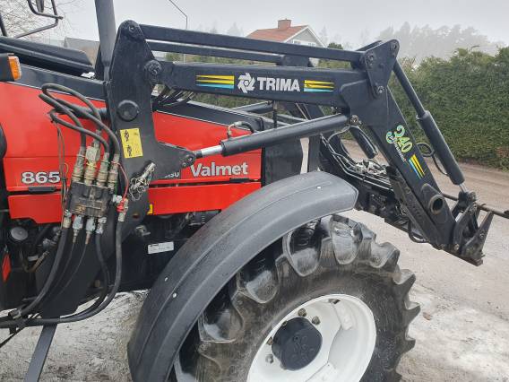 | ( SÅLD ) Beg traktor Valmet 865 Årsmodell -98 Ca 4457 tim. 4 cylindrig dieselmotor med turbo 87 hk. Hitchkrok & gaffeldrag. Fri returuttag. Skogshytt med vändbar stol. Fällbar ratt. Gaspedal bak. Arbetslampor fram & bak. Motorvärmare med kabel. Framskärmar. Frontlastare Trima 340 SMS & Euro fäste. Hydrauliskt redskapslås. Tredje funktion för balgrip mm. Instruktionsbok finns. Mkt fint skick! |