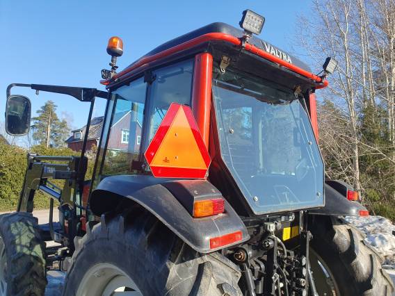 ( SÅLD) Beg traktor Valtra A95 Årsmodell -03. Hitchkrok & lantbruksdrag. Vändbar stol. Skogskil för ventilpaket. Frontlastare Trima +3.0P Årsmodell -10. Eurofäste. Fint skick!