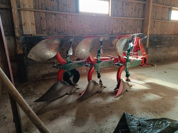 Beg växelplog Kverneland modell E8. 3-skärig. 14" tum. Stödhjul. Nästan nya förplogar. Vändbara spetsar. Fler bilder kan ordnas.