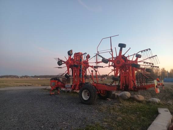 Rejäl strängläggare med 4 rotorer, 15 meters arbetsbredd. Vikt 7ton. Fungerande. Ev byte John Deere, hjullastare, grävare. Jag lägger pengar imellan