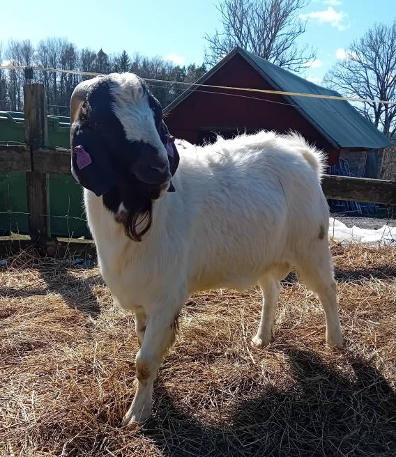 Snäll och stilig boerbock 1,5 år. Blev pappa till 9 fina killingar under våren. Ej CAE testad.