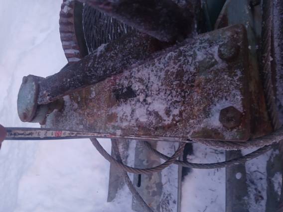 Stor kraftig handvinsch på medar. Grov vajer, 15mm. Hämtas av köparen. Pris inkl moms.