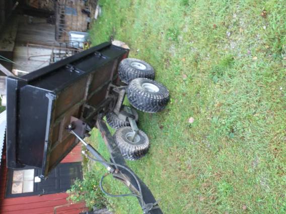 Kraftig tippkära passar liten grävare lastar 2ton kolv är helt tät kan stå i flera dagar utan sjunka däck är mycke bra kraftigt flak