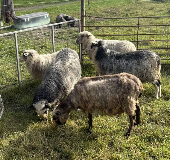 • De 2 mörkare grå är renrasiga klövsjöfår utan intyg som Genbanken eller liknande. Den ena är 5 år och den andra är hennes dotter på 1,5 år