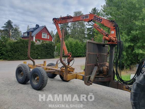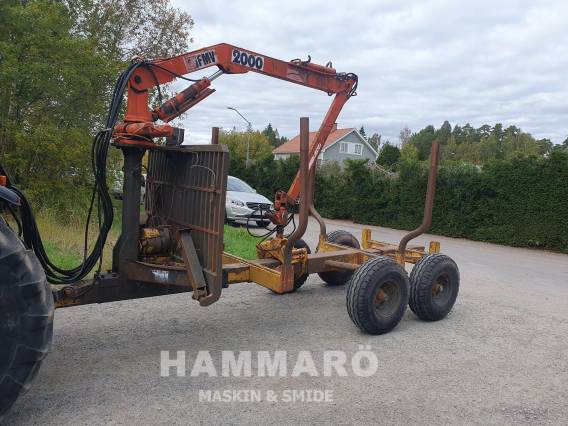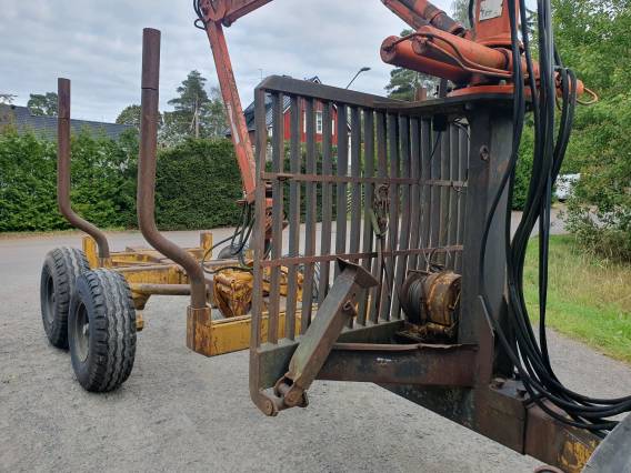 Beg skogsvagn Moheda vagnen med FMV 2000 kran. Boggi. Flyttbar axel & banke. Frontgrind. 4 stakar med förhöjning. 6 st stakhål. Manuella stödben. Grip KG 180 (ca 3 år gammal) Dubbla svängcylindrar. Vinsch Star kraftuttagsdriven. Flerspakspaket. Bra däck. Inga lagningar eller läckage.