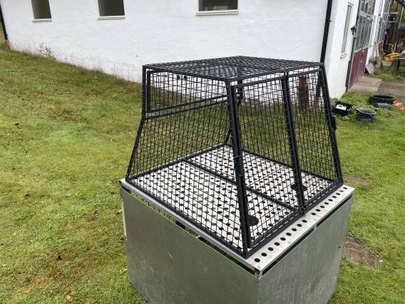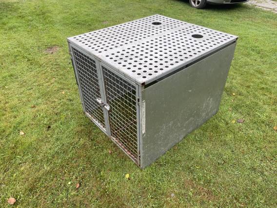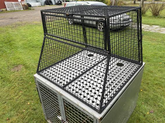 Hundburar 500kr för den lilla och 800kr för den större i rostfritt. Svarta buren 100x100x80cm. Stora buren 100x110x90cm