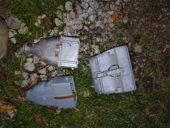 Två handskar, en i metall och en i plast, och ett flänsmonterat uttag, allt gott skick. Gratis, för musealt bruk eller om någon till äventyrs tycker de är ok att använda. Mottagaren betalar ev frakt