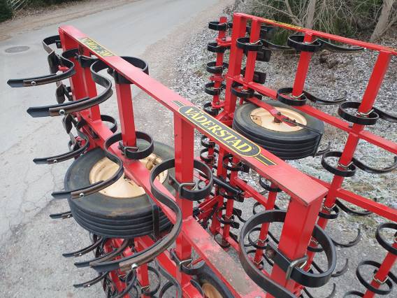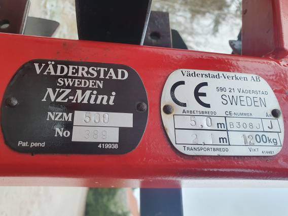 Beg harv Väderstad NZM 500 Årsmodell-00. Arbetsbredd 5 meter. Hydraulburen med ledat trepunktsdrag. Hydraulisk uppfällning. Hydraulisk crossboard. Efterharv. Nya spetsar. Vikt 1200 kg. Mycket fint skick.