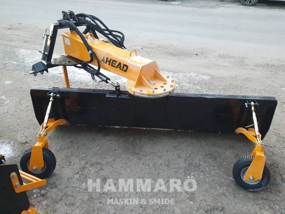 Snöblad/Schaktblad AHead Arbetsbredd 250 cm. Höjd 63 cm. Hydraulisk svängbar bom. Hydrauliskt svängbart/vändbart blad. Bultat slitstål. Hjulsats medföljer. Trepunktsfäste Kat.2. Nytt och finns hemma för omgående leverans!