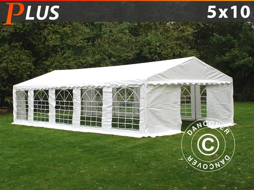 Partytält Plus 5 x 10 meter med kraftig PE-duk (200 g/m²) med galvaniserade stålrör